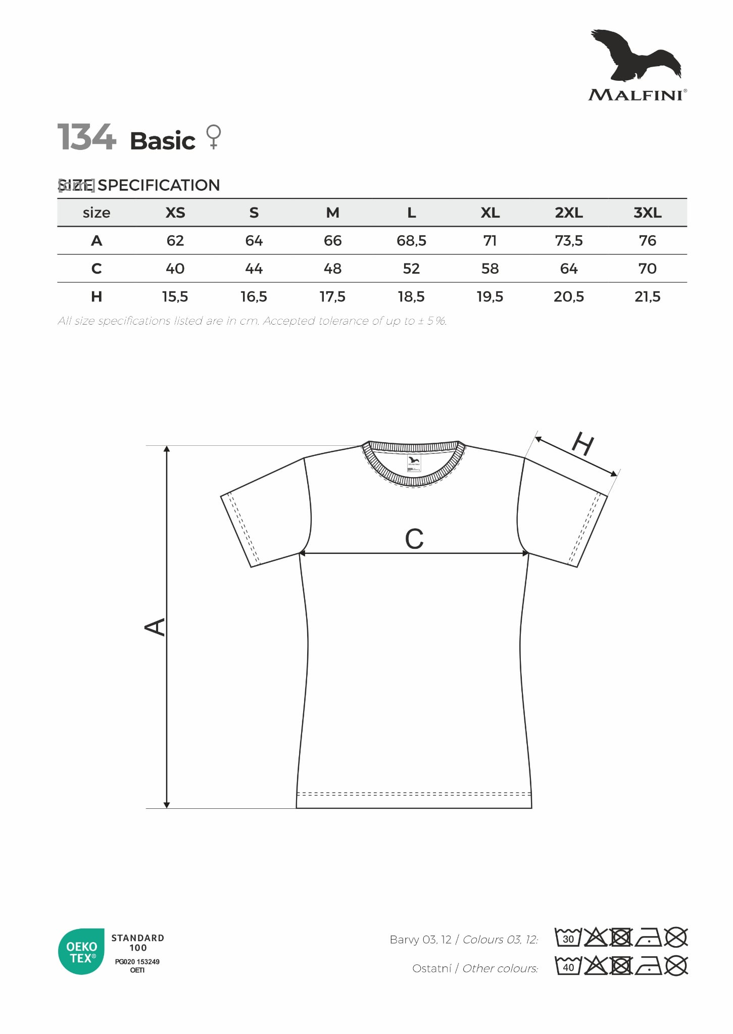 - Single Jersey, 100 % bawełna (kompozycja może się różnić – kolor 03 – 97 % bawełna, 3 % wiskoza, kolor 12 – 85 % bawełna, 15 % wiskoza), wykończenie silikonowe